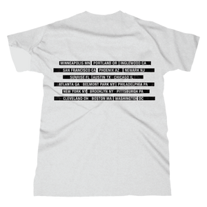 Land Of Hope & Dreams graphic on the front and 2026 US Tour cities printed on the back of a white, 100% cotton, unisex t-shirt.